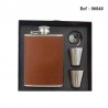 240ml chrome/leather flask set, funnel & 2 silver tumblers