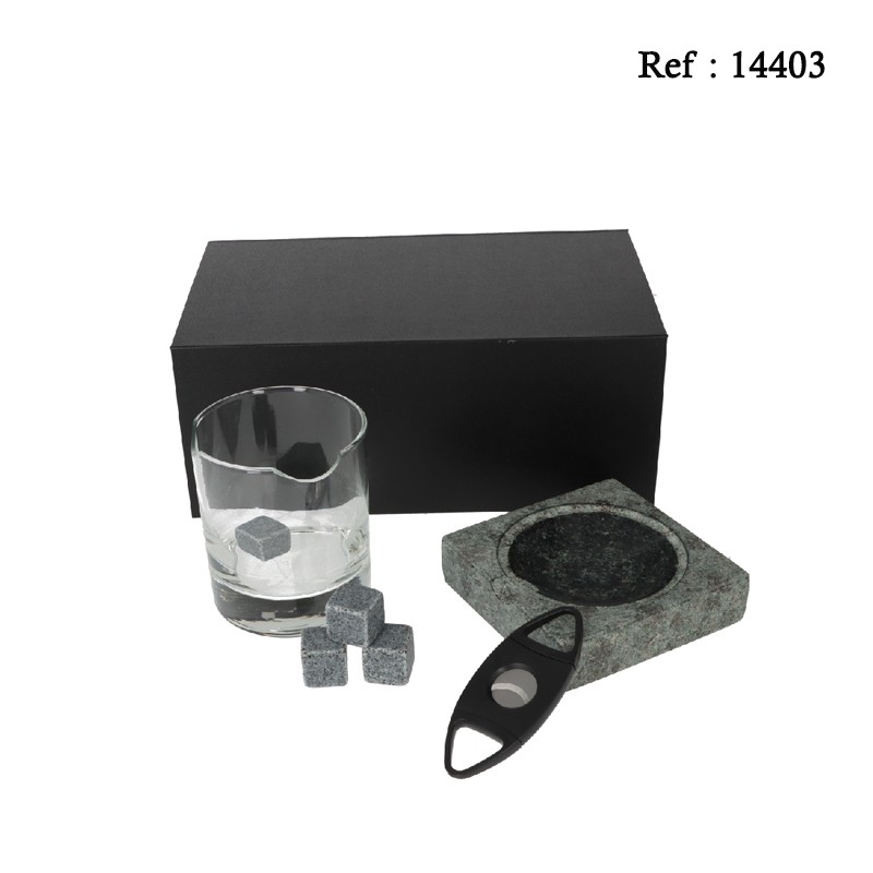 Coffret Cendrier Cigare Granit + coupe cigare + verre + 4 cubes