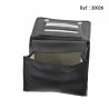 Cette petite sacoche en cuir Sareva forme panier de coloris noir se caractérise par un intérieur en vessie de porc synthétique et peut contenir du papier à cigarette grâce à son emplacement prévu à cet effet.