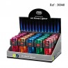 Le display est composé de briquets transparents colorés à clapet fiables, solides et dotés d’une puissante flamme.