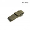 Couteau couvert camping, 3 pièces (lame, ouvre-boîtes, tire-bouchon) + 2 démontables (cuiller, fourchette) s'adaptant dans le manche 14 cm. Toutes pièces inox, étui toilé avec passant de ceinture.