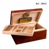 Esthétique et moderne, cette cave à cigare fabriquée en bois de cèdre dispose d'un hygromètre à cheveux pré-calibré de haute précision ainsi que d'un humidificateur en or platiné acryl polymer, avec système de ventilation ajustable afin de réguler le taux d'humidité. L'hygromètre et les humidificateurs sont fixés sous le couvercle de la cave grâce à un système de plaque aimantée.
