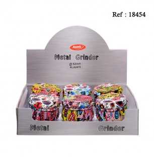 Voici un grinder en métal La Catrina en forme de tambour. Ses couleurs vives sont parfaites pour l’été. Son diamètre est de 5.2 centimètres. Votre grinder vous sera livré par display de 6.