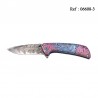 Couteau THIRD Acier 3D décor Damas Bleu/Rose 11.5cm, Inox