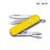 Manche 58 mm, jaune7 FONCTIONS (5 PIECES).- lame- lime à ongles avec :- tournevis 3 mm- ciseaux- pincettes- cure-dents- anneau
